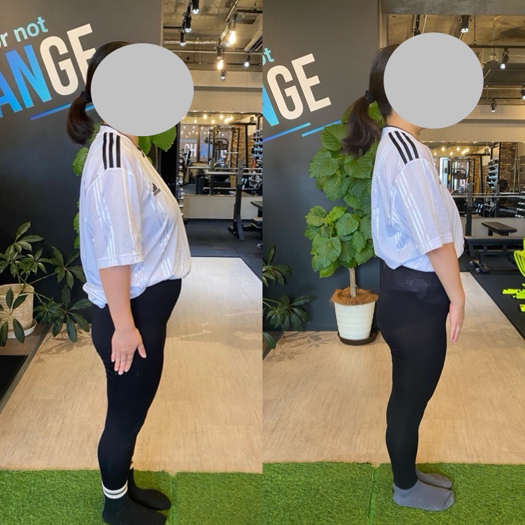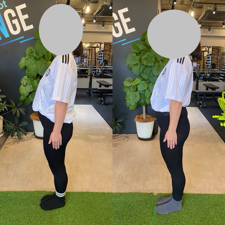 お写真で見比べても上半身の厚みが薄くなっていますし、お尻の位置が7月の時と比べても上がっているのがわかります☺️