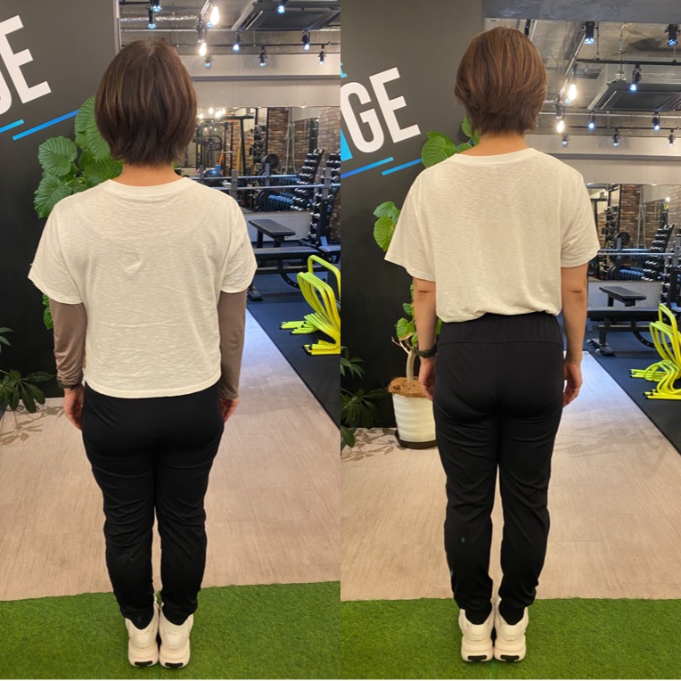 数字としても申し分ないですが、お写真で見てもまずは立ち姿勢が良くなっています。身体の厚みも二回り程コンパクトになりお尻の高さも上がって脚が長く見えますね。