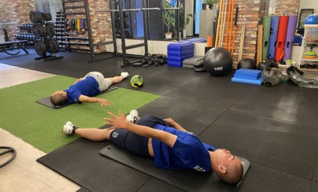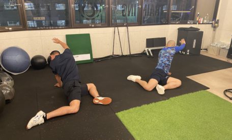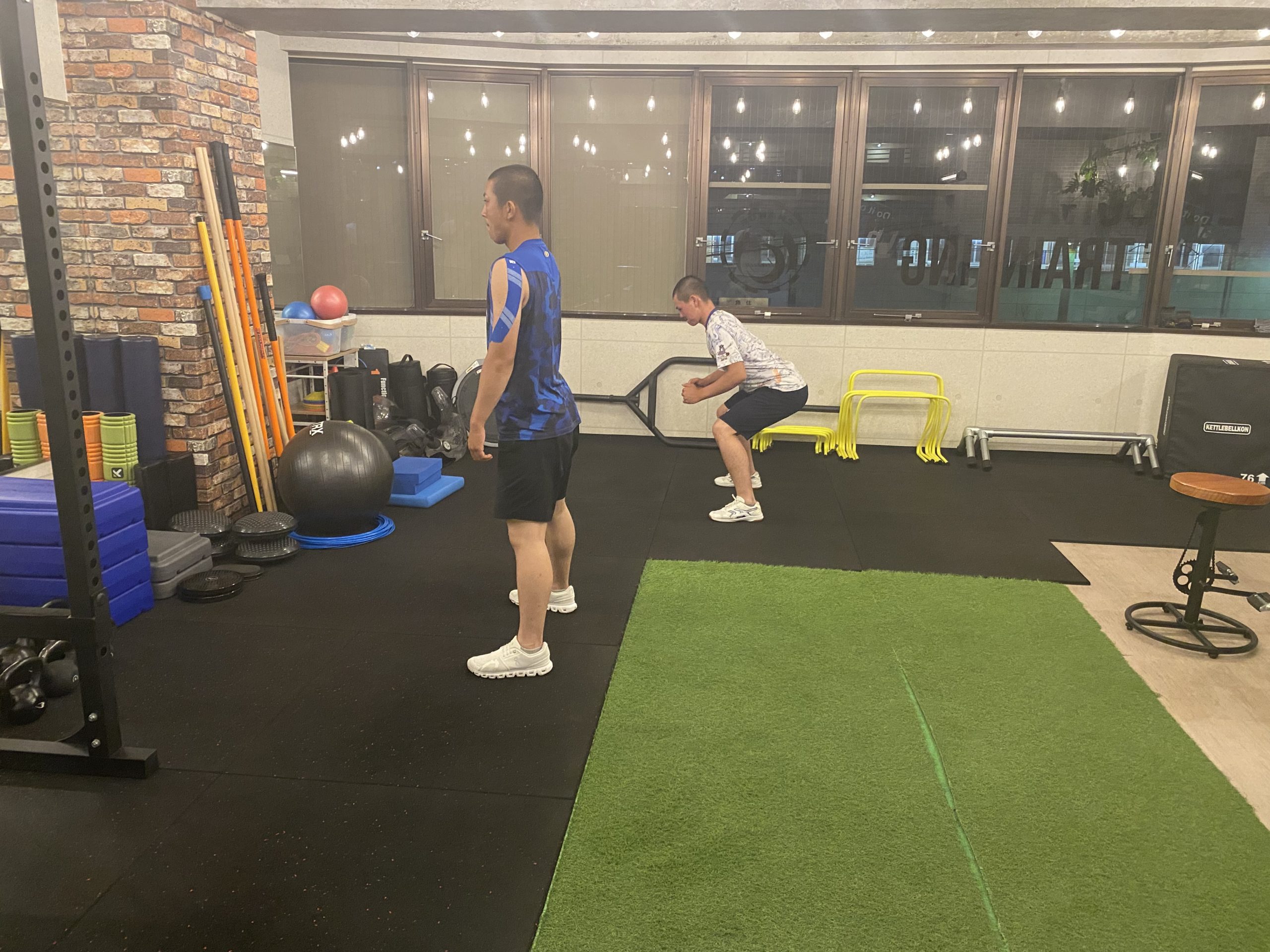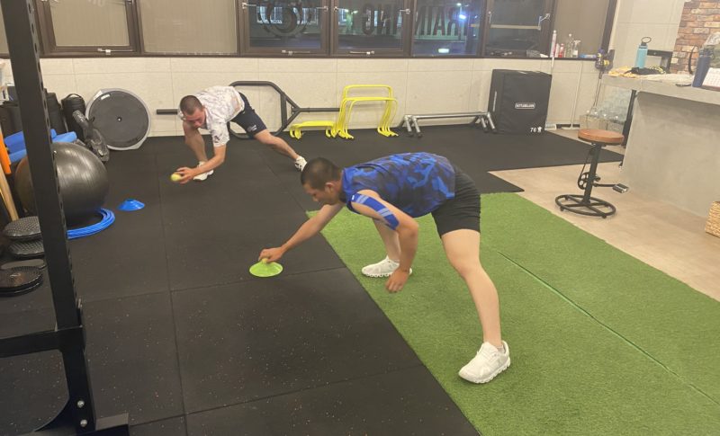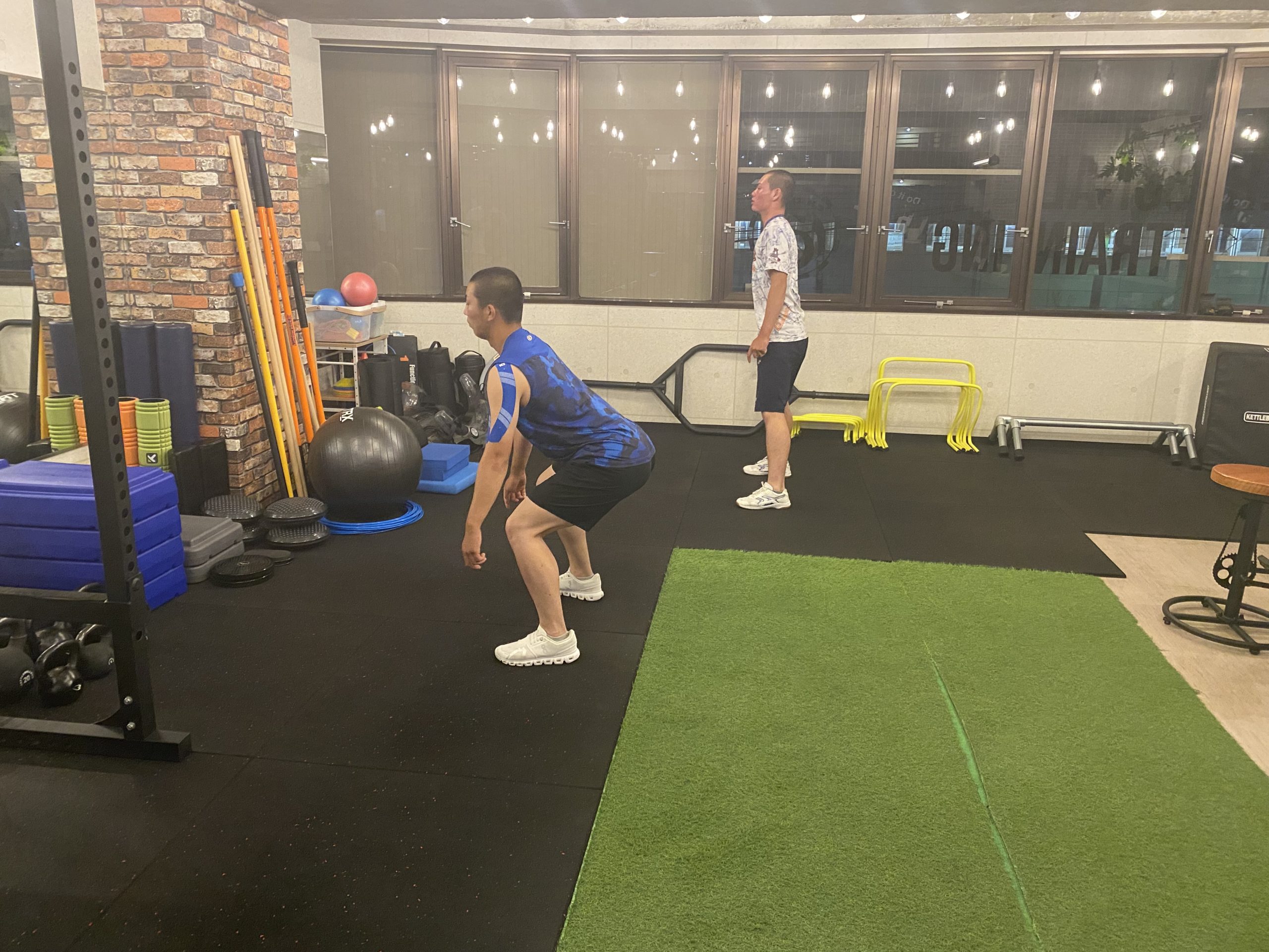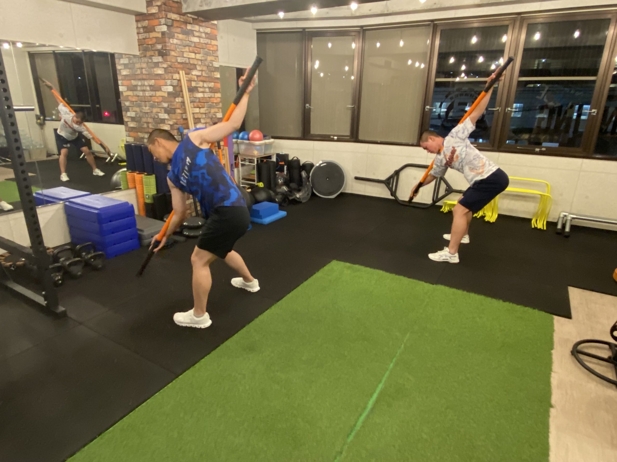 投球動作に必要な動き作り、軸足、踏み込み足の安定性を作るドリルを中心に90分間パーソナルトレーニングを行いました。