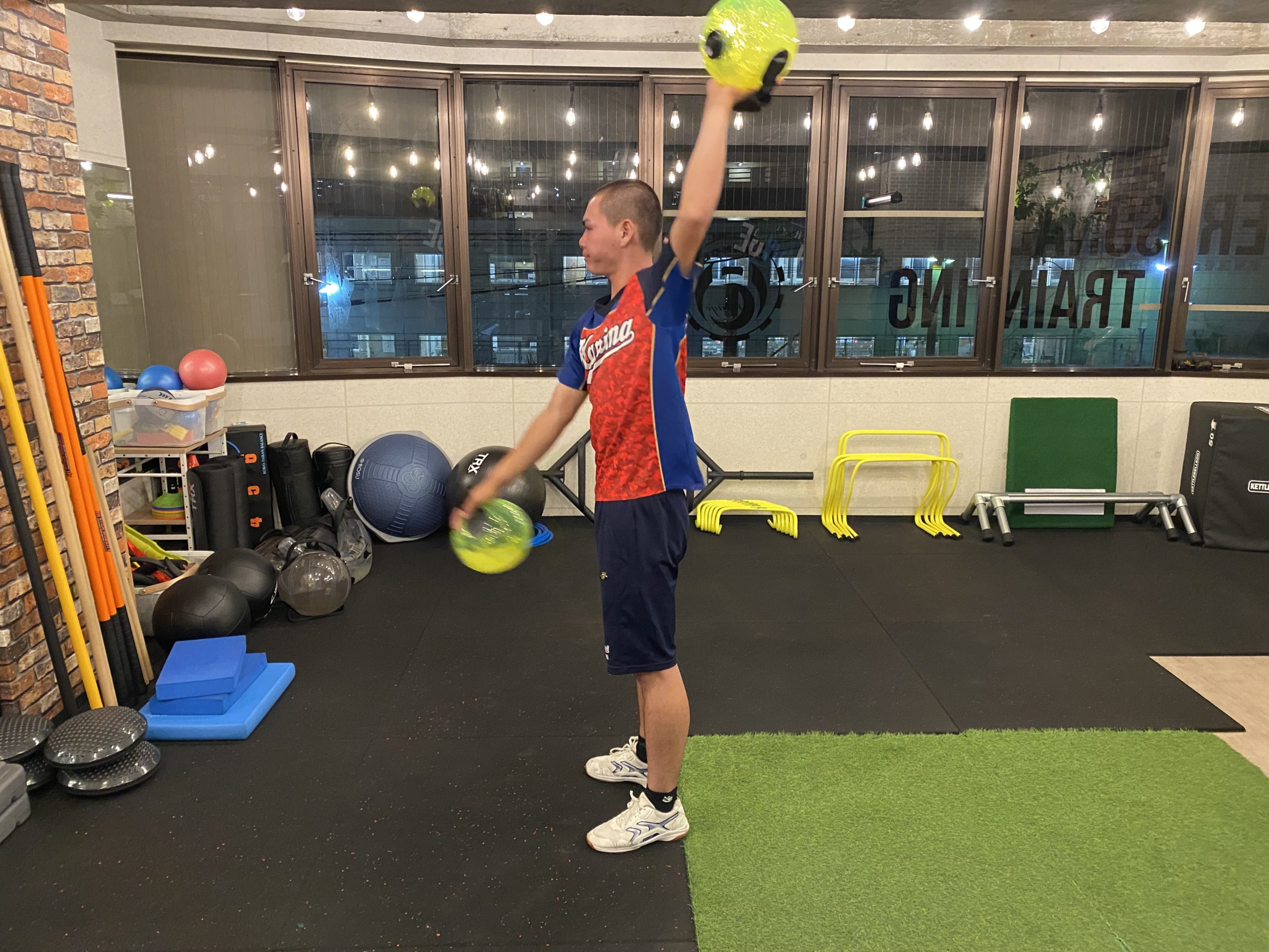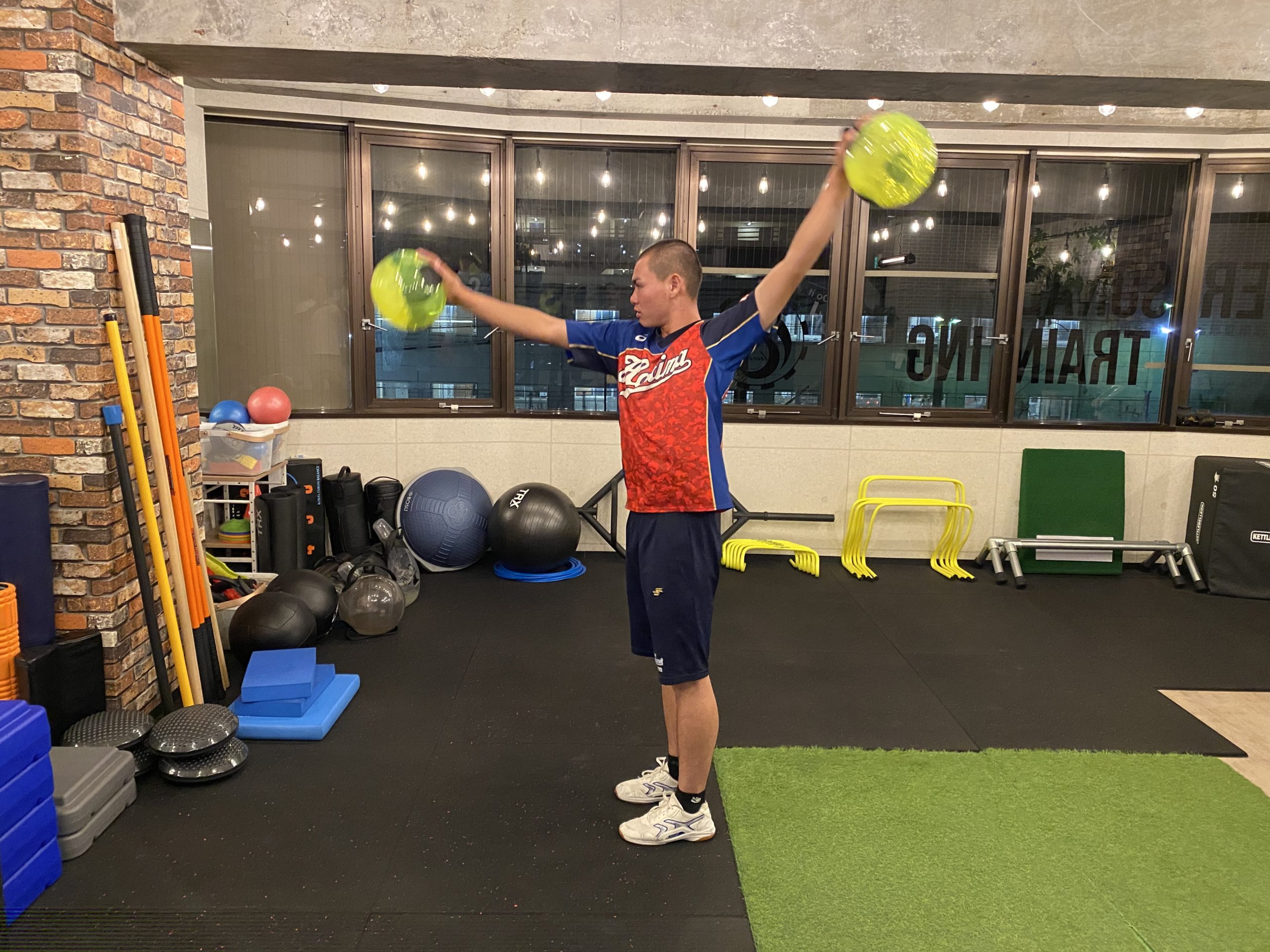 柔軟性・可動性、安定性や出力・パワーの向上。最終的には投球につながるエクササイズを中心に取り組みました。